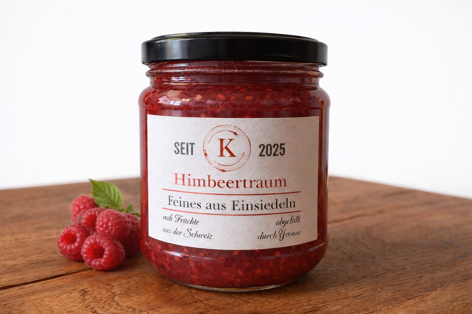 Schon beim Öffnen des Glases entfaltet sich der betörende Duft frisch gepflückter Himbeeren, ein Versprechen auf Genuss pur. Die feine Konsistenz unseres Aufstrichs ist samtig und fruchtig zugleich, perfekt ausbalanciert zwischen angenehmer Süsse und der dezenten, erfrischenden Säure der Himbeeren.